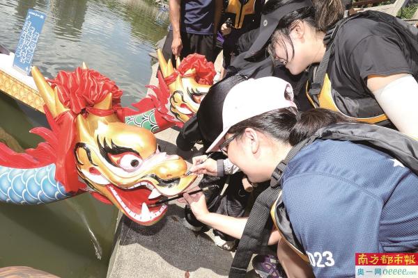 蔡佩娥是个超级的运动爱好者,就在6日下午龙舟体验活动过程前,6日上午就参加了华师大的游泳比赛4个单项。她来到广州工作生活已经6年,一直想体验一次龙舟活动,这次是达成所愿。“让我感到最深刻印象的是点睛仪式,居然给机会我去点睛,真的有点受宠若惊。”