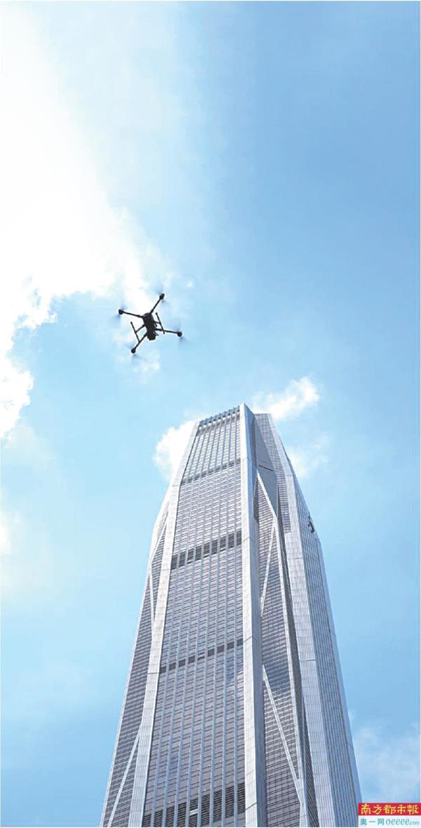 7月6日下午4时,在深圳第一高楼平安金融中心旁高100米、距离玻璃幕墙15米外的地方,一架无人机搭载飞行系统,对准有弧度的外墙,根据预设的巡检航线,自动横移飞行捕获数据,为城市建筑进行“健康体检”。