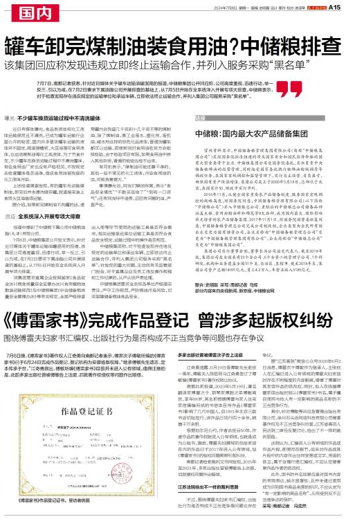 中储粮集团公开回应称,公司高度重视、迅速行动,举一反三、引以为戒,在7月2日要求下属油脂公司开展排查的基础上,从7月5日开始在全系统深入开展专项大排查。