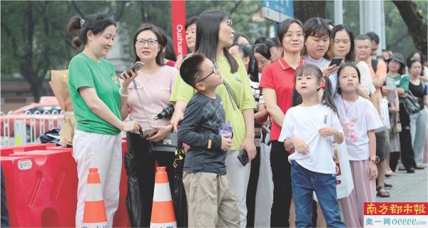 2024年6月9日下午,高考最后一场考试结束前,广州市第三中学考点外,站满了前来接考的亲朋好友。