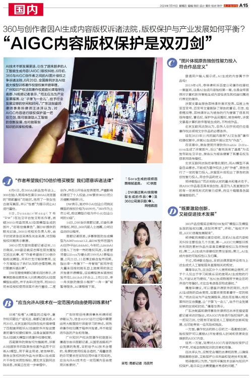 6月初,360与AIGC创作者之间的AI图片侵权之争诉诸法院。6月20日,全国首例涉及AI绘画大模型训练著作权侵权案开庭审理。
