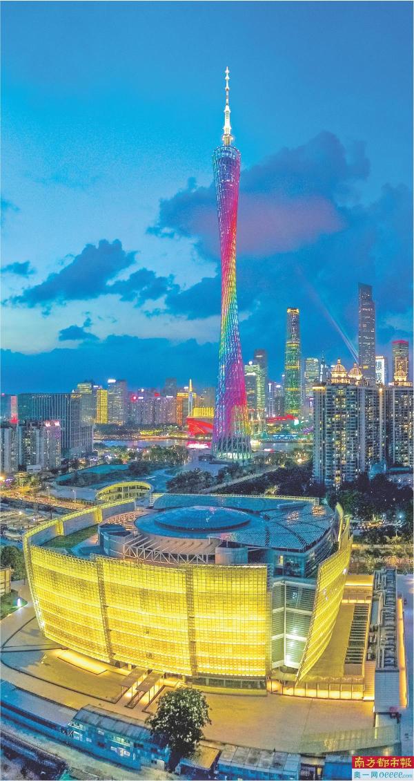 在广州城市新中轴线南段,美轮美奂的广州艺术博物院(广州美术馆)新馆与中轴线上的广州塔遥相辉映。 南都记者 邹卫 摄