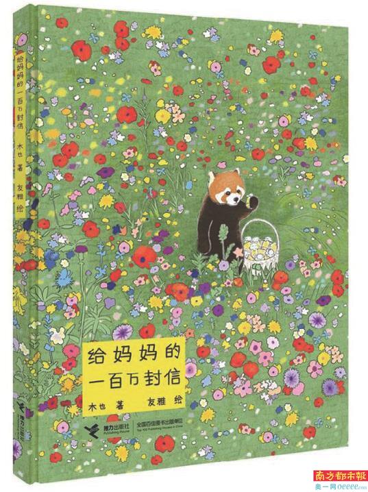 万物驳杂深邃的生命气息,也经由色彩和笔触而飘落到了书页上。《给妈妈的一百万封信》由插画师、图画书作者友雅担纲设计。书封上一片开满鲜花的草地,一只憨憨的小熊猫在草地上收集阳光,它的手中拿着盛满阳光的玻璃瓶,友雅说:“阳光在手中,爱在心里。”
