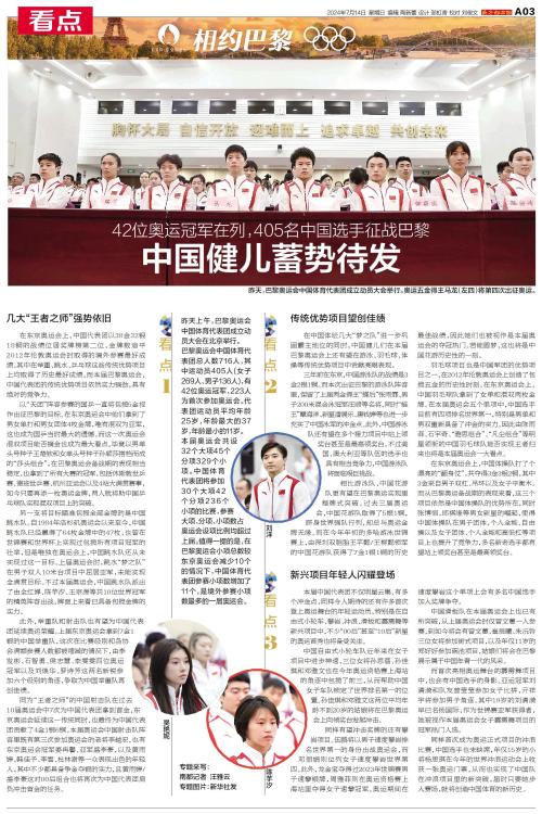在中国体坛几大“梦之队”进一步巩固霸主地位的同时,中国健儿们在本届巴黎奥运会上还有望在游泳、羽毛球、体操等传统优势项目中贡献亮眼表现。