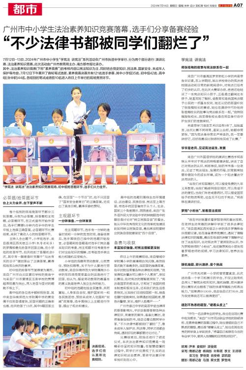 7月12日-13日,2024年广州市中小学生“学宪法 讲宪法”系列活动在广州市执信中学举行,分为两个部分进行:演讲比赛、法治素养知识竞赛。