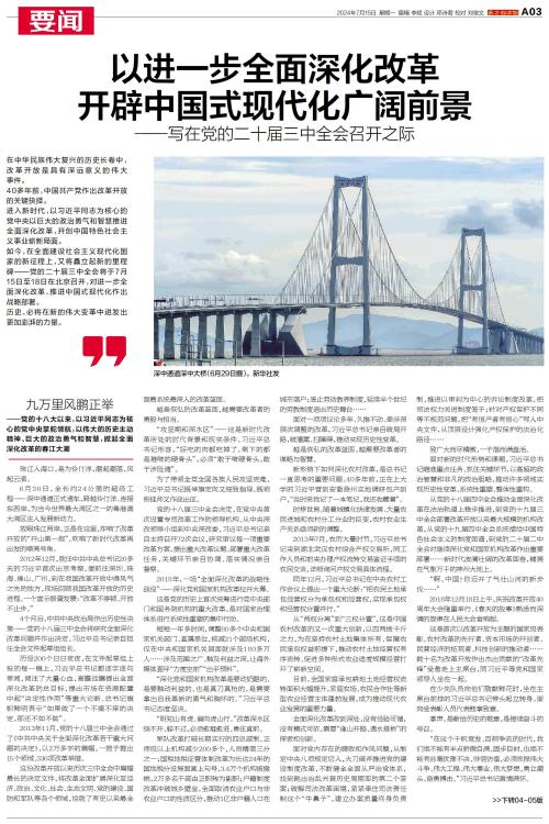 党的二十届三中全会将于7月15日至18日在北京召开,对进一步全面深化改革、推进中国式现代化作出战略部署。