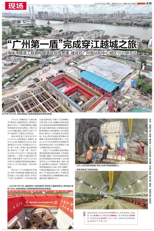 7月15日,随着西线“大道先锋号”盾构机刀盘破洞而出,顺利抵达接收工作井,广州海珠湾隧道工程盾构隧道段实现双线贯通。