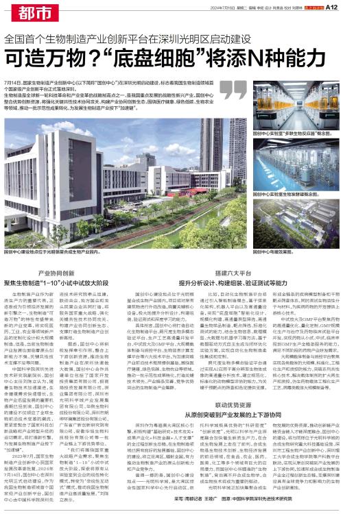 7月14日,国家生物制造产业创新中心(以下简称“国创中心”)在深圳光明启动建设,标志着我国生物制造领域首个国家级产业创新平台正式落地深圳。