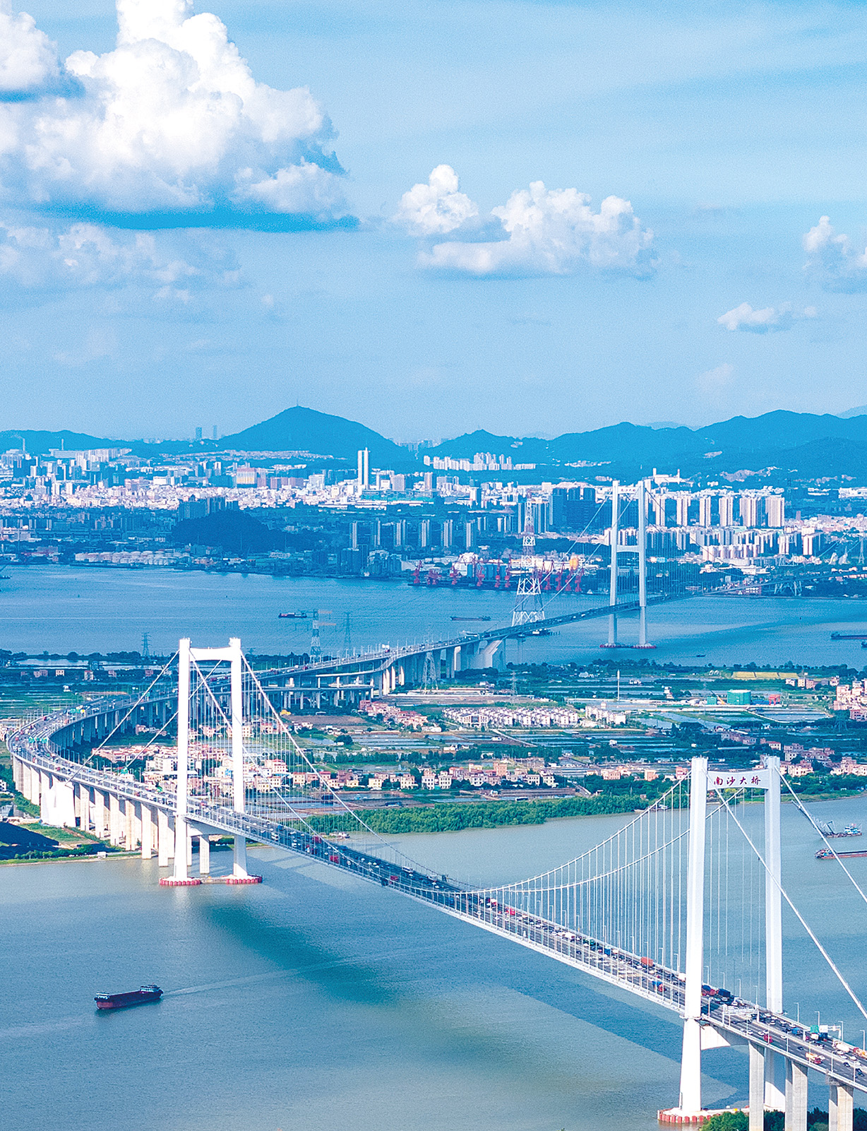 7月14日,蓝天白云下的南沙大桥。 南都拍客 何永海 摄