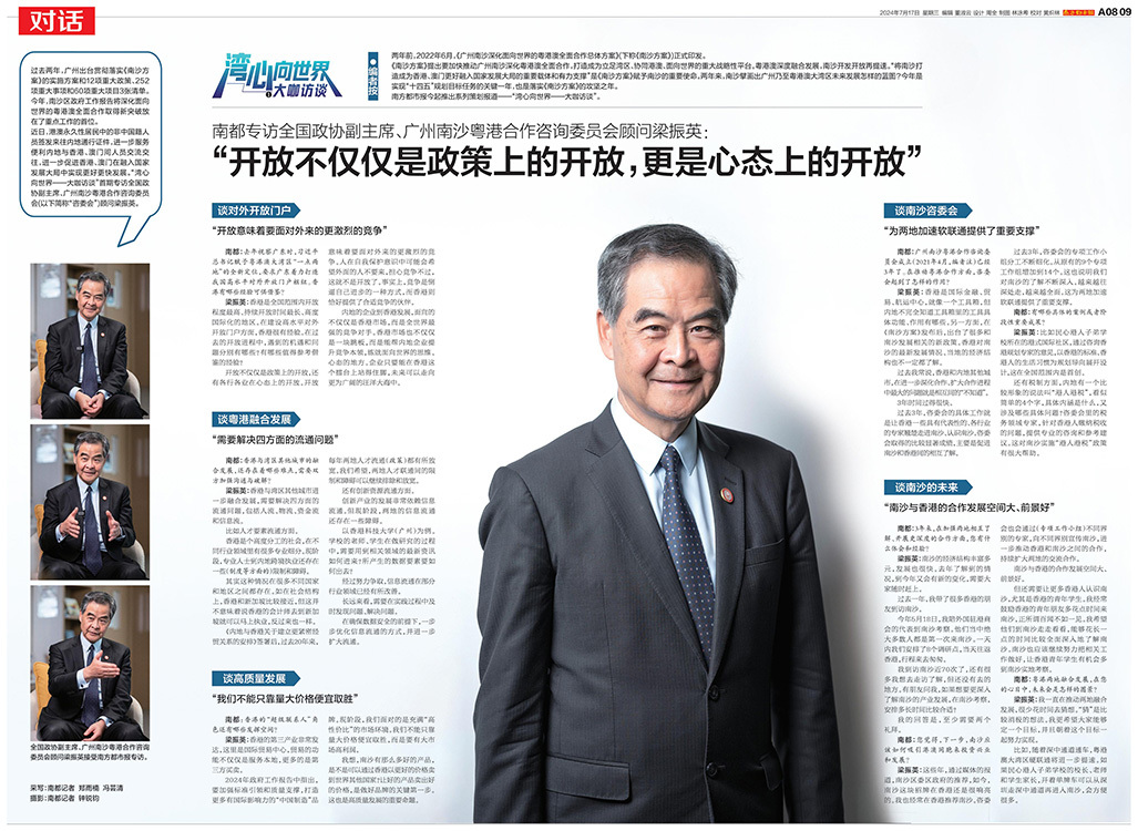 “湾心向世界——大咖访谈”首期专访全国政协副主席、广州南沙粤港合作咨询委员会(以下简称“咨委会”)顾问梁振英。
