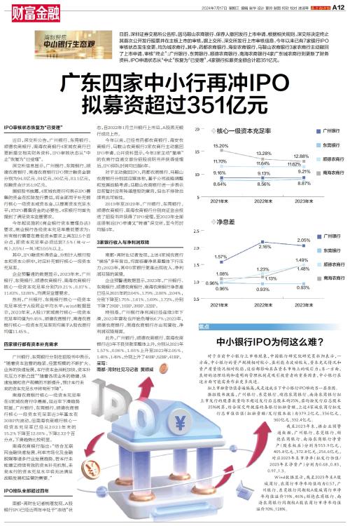 广东四家中小行再冲IPO 拟募资超过351亿元