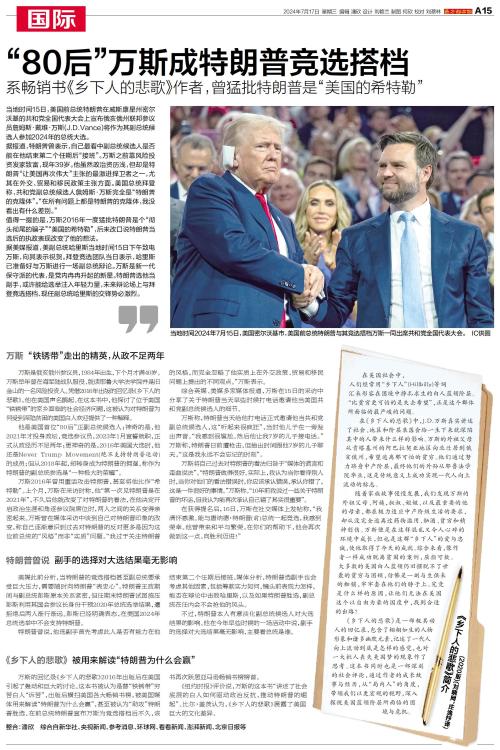 “80后”万斯成特朗普竞选搭档