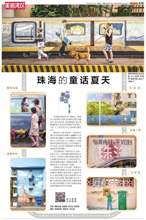 墙上身着橘黄色外衣的女孩举着手中的相机,“拍”下了途经此处也正看着风景的行人。