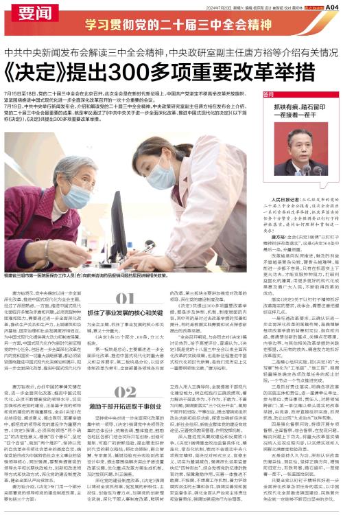 7月19日,中共中央举行新闻发布会,介绍和解读党的二十届三中全会精神。