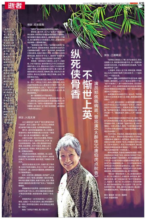 “金燕子”走了。19日上午,郑佩佩所属经纪公司凯艺国际发消息,郑佩佩于美国时间2024年7月17日去世。多位演艺圈人士发文悼念。
