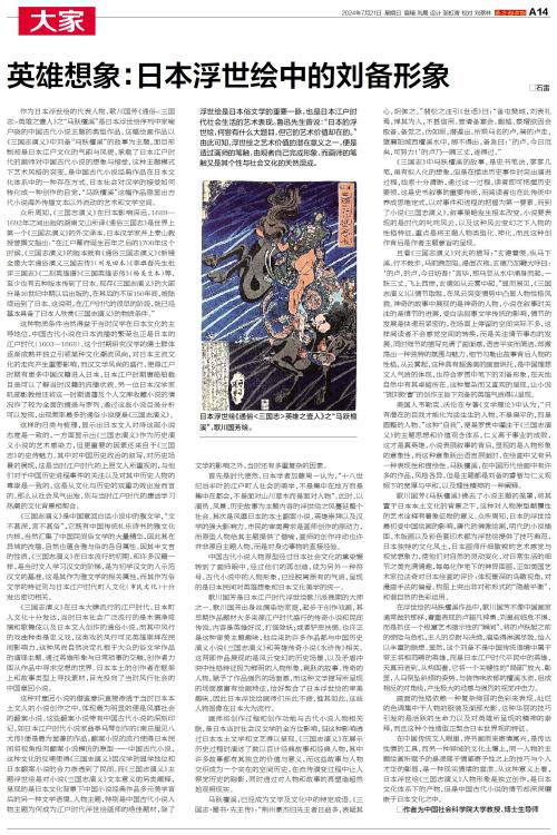 作为日本浮世绘的代表人物,歌川国芳《通俗<三国志>英雄之壹人》之“马跃檀溪”是日本浮世绘序列中家喻户晓的中国古代小说主题的典型作品。这幅绘画作品以《三国志演义》中刘备“马跃檀溪”的故事为主题,面目形制却是日本江户文化的气韵与风貌,承载了日本江户时代的画师对中国古代小说的想象与接受,这种主题模式下艺术风格的突变,是中国古代小说经典作品在日本文化体系中的一种存在方式。日本社会对汉学的接受如何转化成一种创作的自觉,“马跃檀溪”这幅作品隐显出古代小说海外传播文本以外流动的艺术和文学空间。
