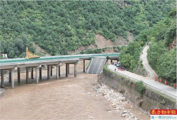 7月19日20时40分许,G4015丹宁高速(丹凤县至宁陕县)水阳段(柞水县至山阳县)山阳方向K46+200处柞水县杏坪镇严坪村二号桥局部发生单侧垮塌(全长366米,跨越金钱河),垮塌长度约40米。通过高速收费系统比对、视频监控、电话核实,初步判断共有17辆轿车和8辆货车坠河遇险。