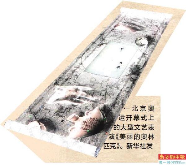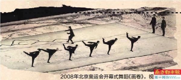 在“鸟巢”的巨大舞台上,一幅巨型卷轴向两边展开,露出居中的空白“画芯”;十余位黑衣舞者随兴起舞,同时在画纸上留下真实的墨迹,最后竟组成了一幅包含日月、山、水、云纹等元素的中国画——还记得吗?这个舞蹈名为《画卷》,是2008年北京奥运会开幕式文艺演出的开场节目。这支承载着国际前沿视野、融合东西方文化的现代舞作品,让国人耳目一新,也让海外观众刮目相看。短短数分钟的演绎,却足以成为奥运文艺演出史上的恒久经典。