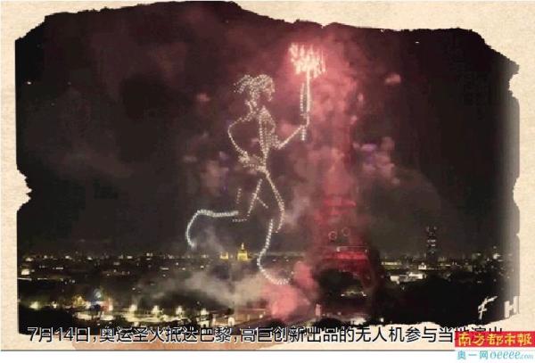 7月14日,奥运圣火抵达巴黎,高巨创新出品的无人机参与当地演出。