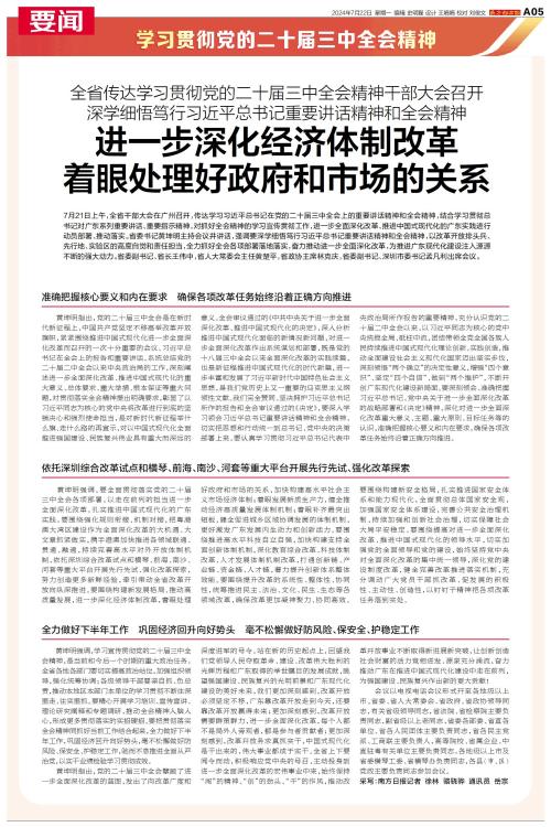 7月21日上午,全省干部大会在广州召开,传达学习习近平总书记在党的二十届三中全会上的重要讲话精神和全会精神。