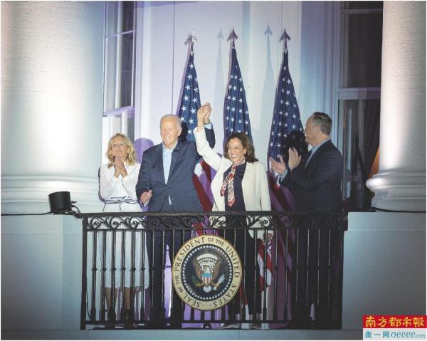 7月4日在美国华盛顿白宫拍摄的美国总统拜登(左二)和副总统哈里斯(右二)。 新华社发