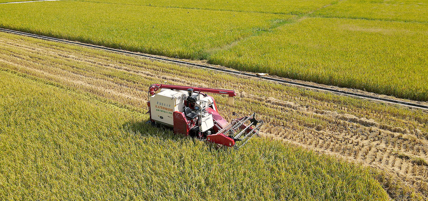东源县柳城镇智慧农场里的无人驾驶收割机,让农场充满“科技范”。