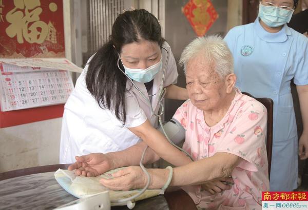 7月5日,广州市荔湾区金花街社区卫生服务中心医生上门为92岁的陈阿婆检查身体。 新华社发