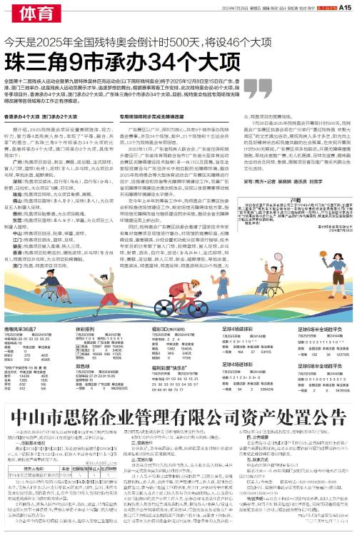全国第十二届残疾人运动会暨第九届特殊奥林匹克运动会(以下简称残特奥会)将于2025年12月8日至15日在广东、香港、澳门三地举办。