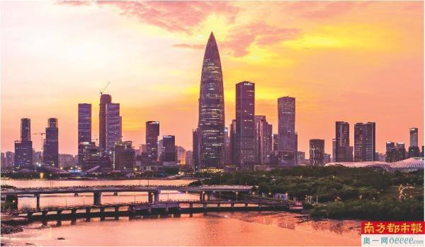 人们来到深圳后海大桥打卡南山晚霞。 南都拍客 黄醒科 摄