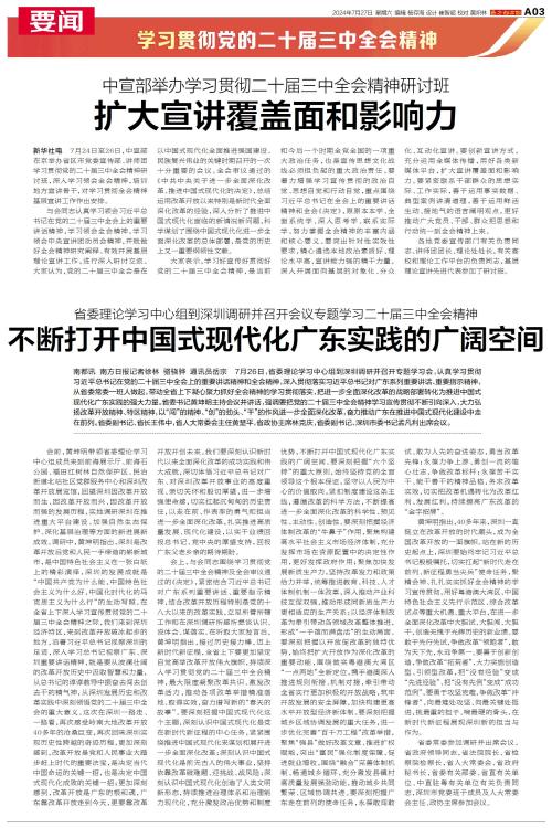 7月26日,省委理论学习中心组到深圳调研并召开专题学习会,认真学习贯彻习近平总书记在党的二十届三中全会上的重要讲话精神和全会精神。