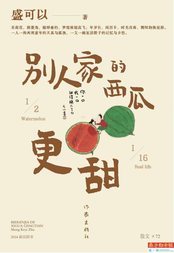 和《建筑伦理学》一道出版的,还有散文集《别人家的西瓜更甜》。简短隽永的文字搭配清新童趣的画作,展现出作家灵魂中天真纯粹的一面。她在绘画中追忆童年和故乡,和还是小女孩的自己一起摘荷花、拾稻穗,因此获得心灵的疗愈。这些绘画颇受读者朋友喜爱,常常供不应求。盛可以笑言:“好像我可以一边治愈自己,还可以获得物质保障,哎呀,真是幸福的人生。”