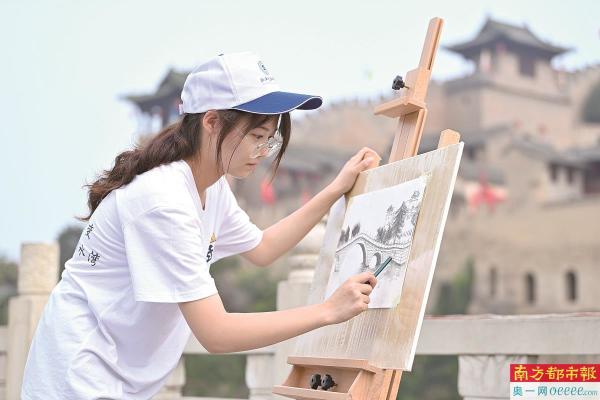 山西科技学院的学生在晋城沁水县湘峪古堡写生。 新华社发
