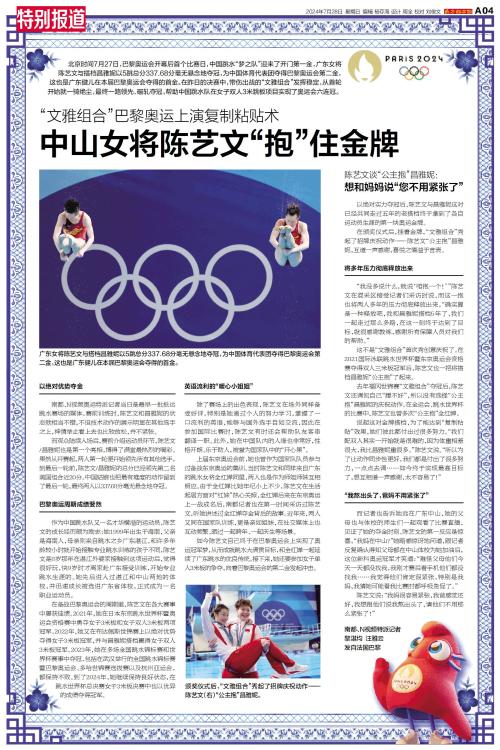 北京时间7月27日,巴黎奥运会开幕后首个比赛日,中国跳水“梦之队”迎来了开门第一金,广东女将陈艺文与搭档昌雅妮以5跳总分337.68分毫无悬念地夺冠。