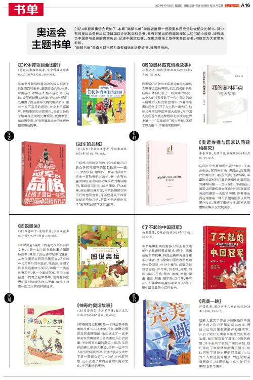 2024年夏季奥运会开始了,本期“南都书单”向读者推荐一组跟奥林匹克运动会相关的新书。