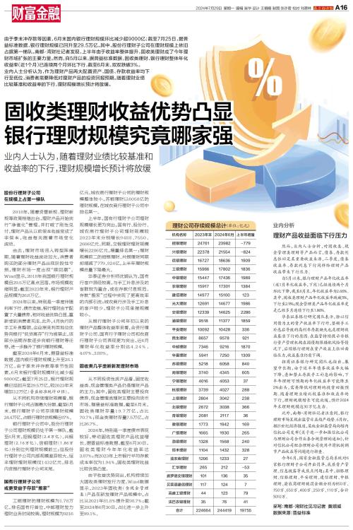 固收类理财收益优势凸显 银行理财规模究竟哪家强