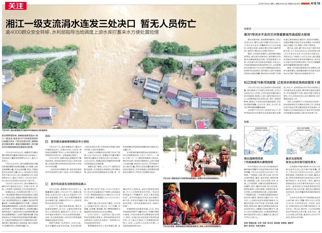 湘江一级支流涓水连发三处决口 暂无人员伤亡