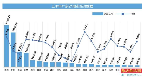 总量方面,深圳、广州、佛山、东莞、惠州继续稳居全省前五。茂名、湛江、汕头3个地市则继续保持粤东粤西粤北地区的前三位。