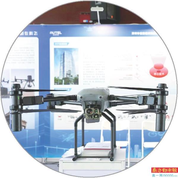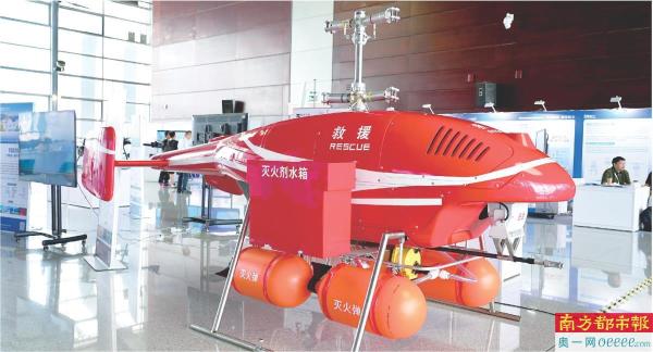 深圳市低空经济高质量发展大会活动现场展示的应急救援无人机。