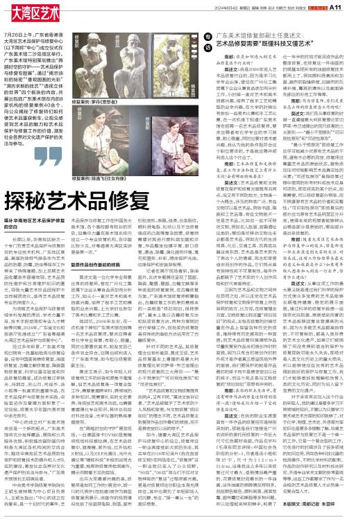 7月26日上午,广东省粤港澳大湾区艺术品保护与修复中心(以下简称“中心”)成立仪式在广东美术馆二沙岛馆区举行。