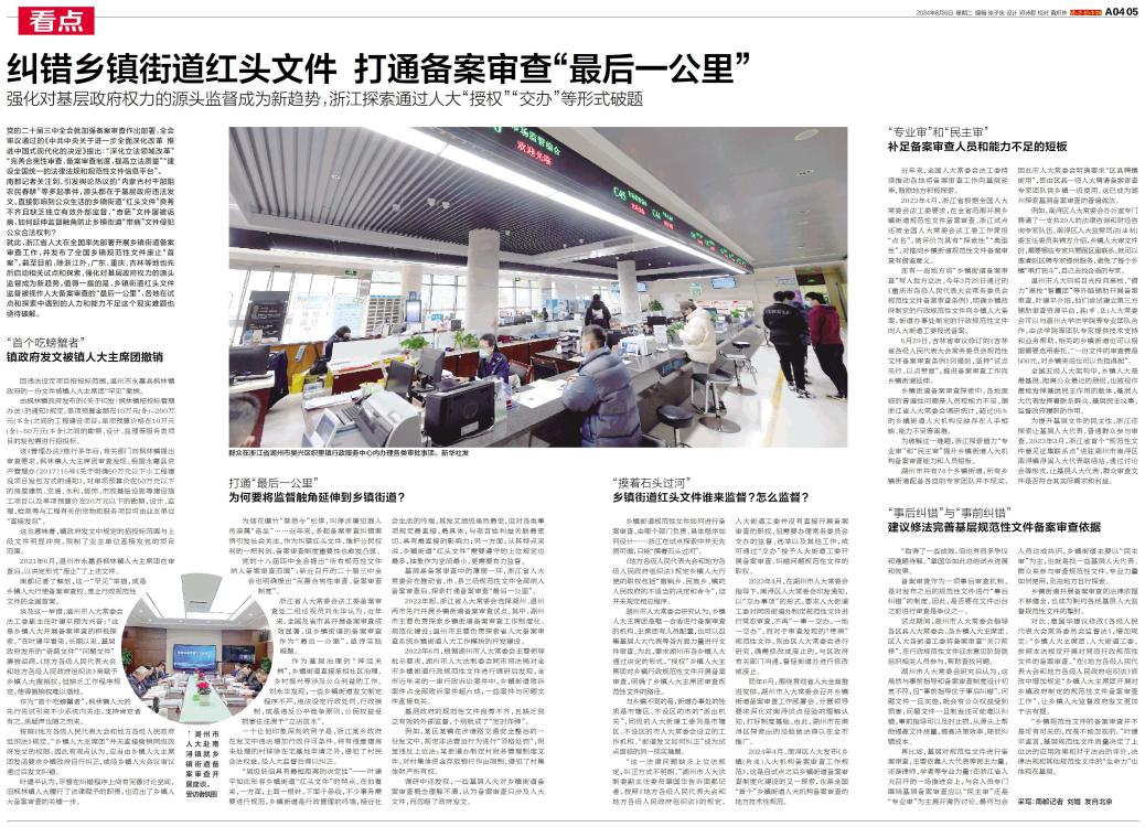 纠错乡镇街道红头文件 打通备案审查“最后一公里”