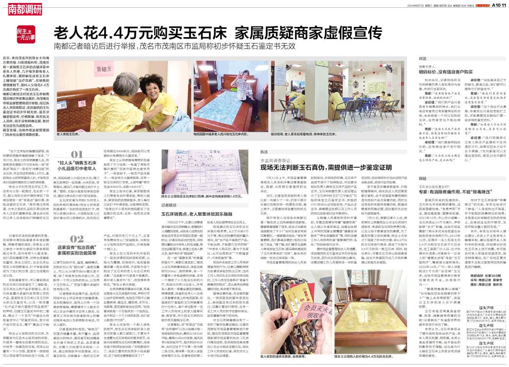 老人花4.4万元购买玉石床 家属质疑商家虚假宣传