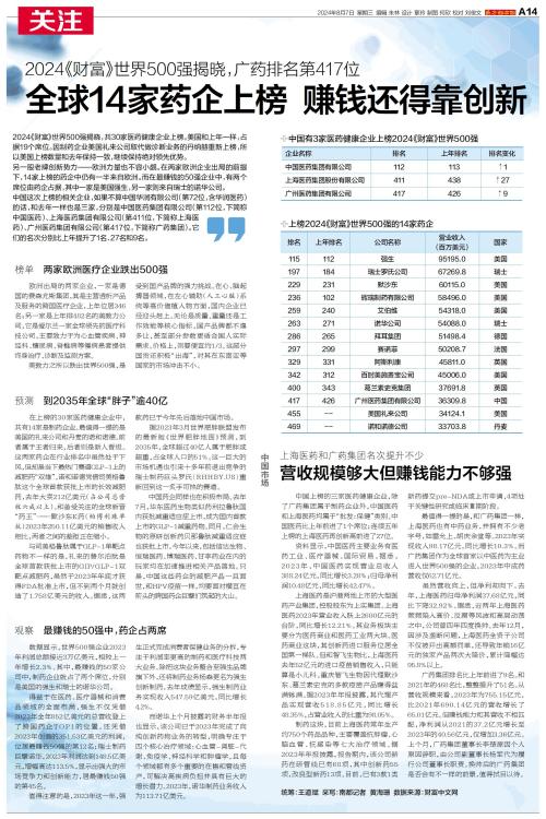 2024《财富》世界500强揭晓,共30家医药健康企业上榜。