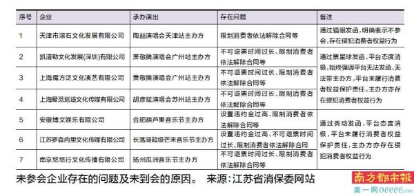 此次江苏省消保委的通报显示,要求票务平台协助约谈相关主办方,大麦、猫眼、票牛按要求约请相关主办方参加约谈会,票星球、秀动态度消极推脱,拒绝向相关主办方及经营者发函。另外,陶喆演唱会天津站主办方天津市滚石文化发展有限公司、萧敬腾演唱会广州站主办方凯潽勒文化发展(深圳)有限公司等企业未参会。