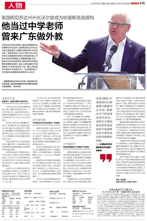 已锁定民主党总统候选人提名的美国副总统哈里斯8月6日宣布,选择明尼苏达州州长沃尔兹为竞选搭档。