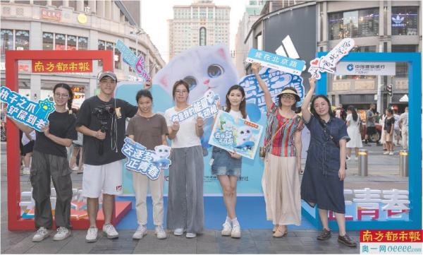 驻足拍照打卡游客中不少是00后。今年15岁的陈若希告诉南都湾财社记者,在小红书、抖音刷到过裸眼3D视频,但现场看“更加真实”。从福建到广州游玩的00后林祖浛,站在路口观赏多时,他表示现场看到南都团队设计的萌猫3D形象,“视觉冲击更大”。厦门游客小廖更直言,“因为猫猫够可爱,所以非常愿意把它分享到社交朋友圈,让更多的朋友知道”,她表示,南都和建行联合发起的“这种传播方式也更容易出圈”。