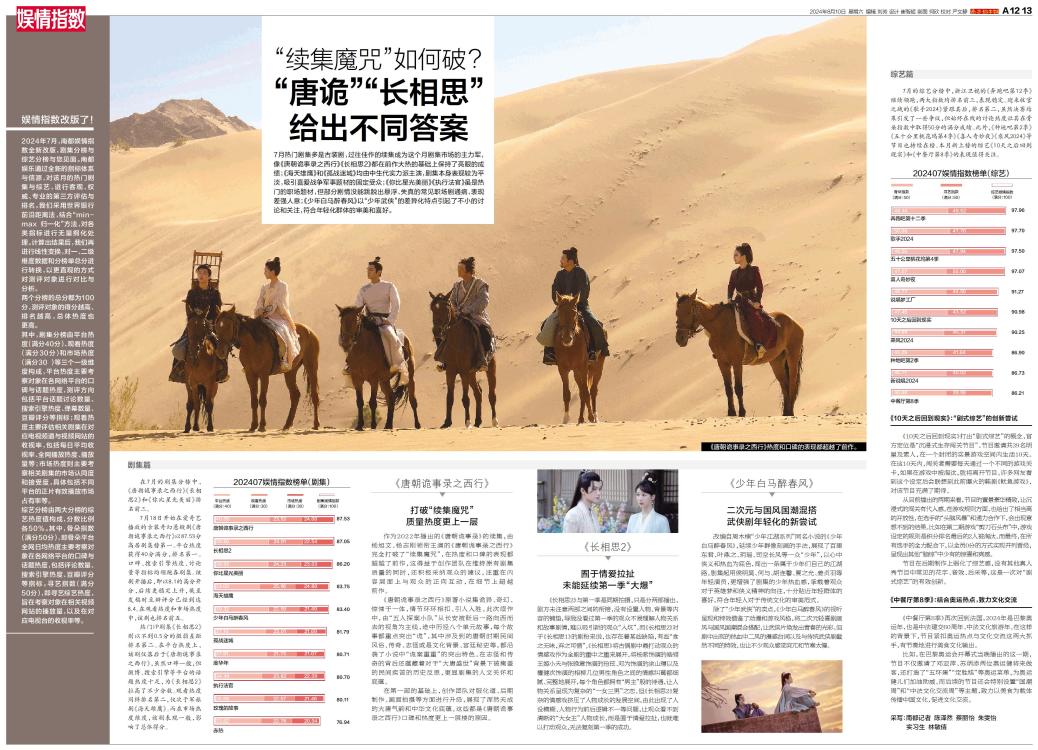 2024年7月,南都娱情指数全新改版,剧集分榜与综艺分榜与您见面。