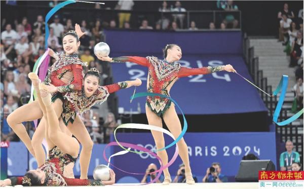 南都讯 在巴黎奥运会上,中国艺术体操队创造了历史。北京时间10日晚间,由丁欣怡、郭崎琪、郝婷、黄张嘉洋和王澜静组成的中国队在巴黎奥运会艺术体操集体全能决赛中以69.800的总分获得金牌,为中国体育代表团夺得第35金。