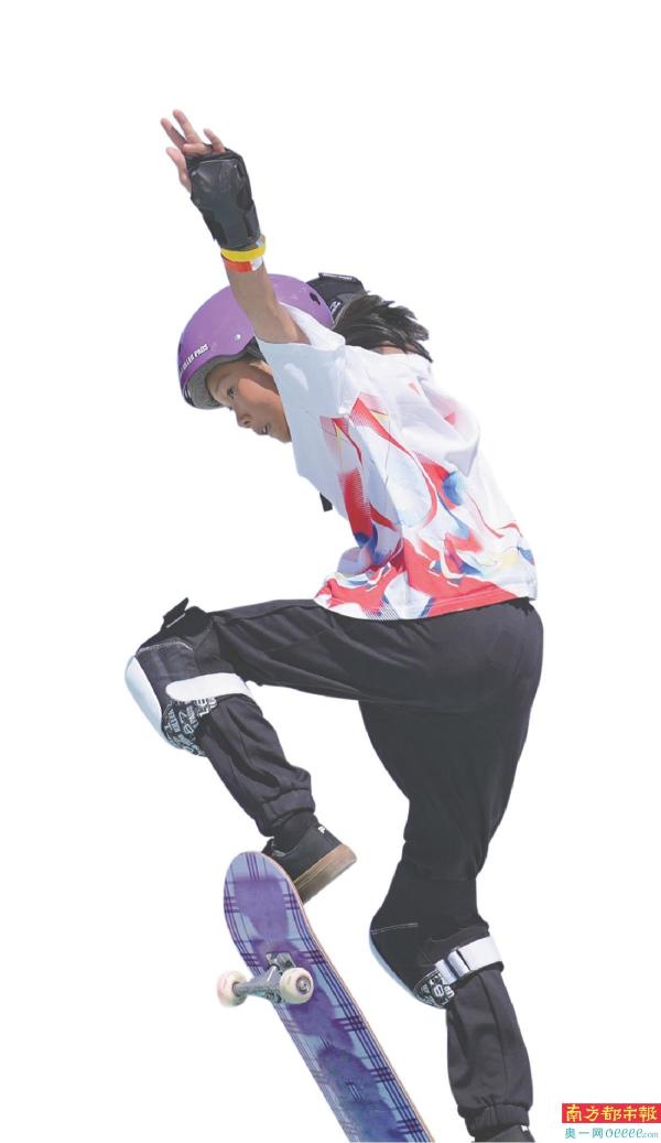 来自济南的中国队选手崔宸曦获巴黎奥运会滑板街式赛第四名,创中国滑板奥运最好成绩。 南都记者 黎湛均 摄