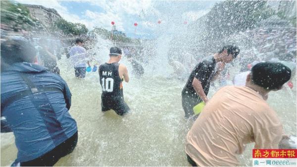 昨日,2024广东(连山)“七月香”壮家戏水暨非遗民俗文化系列活动在连山壮族瑶族自治县吉水河举行。壮瑶歌舞展演结束后,戏水狂欢正式开始,数万市民游客跳下河道,激烈的“戏水大战”热闹上演,沉浸式体验壮瑶非遗民俗文化的魅力。