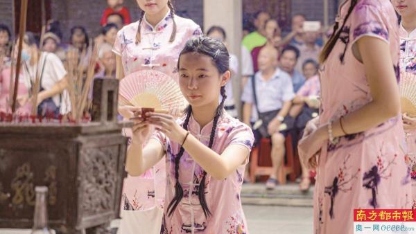 昨日上午,广州市天河区珠村举行巧娘“迎七姐”(祭拜牛郎织女)活动。 南都、N视频记者 李孟麟 摄